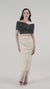 Natalia Off Shoulder Maxi DressThis strapless maxi dress is a statement of striking elegance and contemporary seduction. The corset-inspired bodice is adorned with delicate lace embroidery in soft ivory and black, balancing romance with bold sophistication. Flowing into a sleek lycra wrap with a daring thigh-high slit, the...