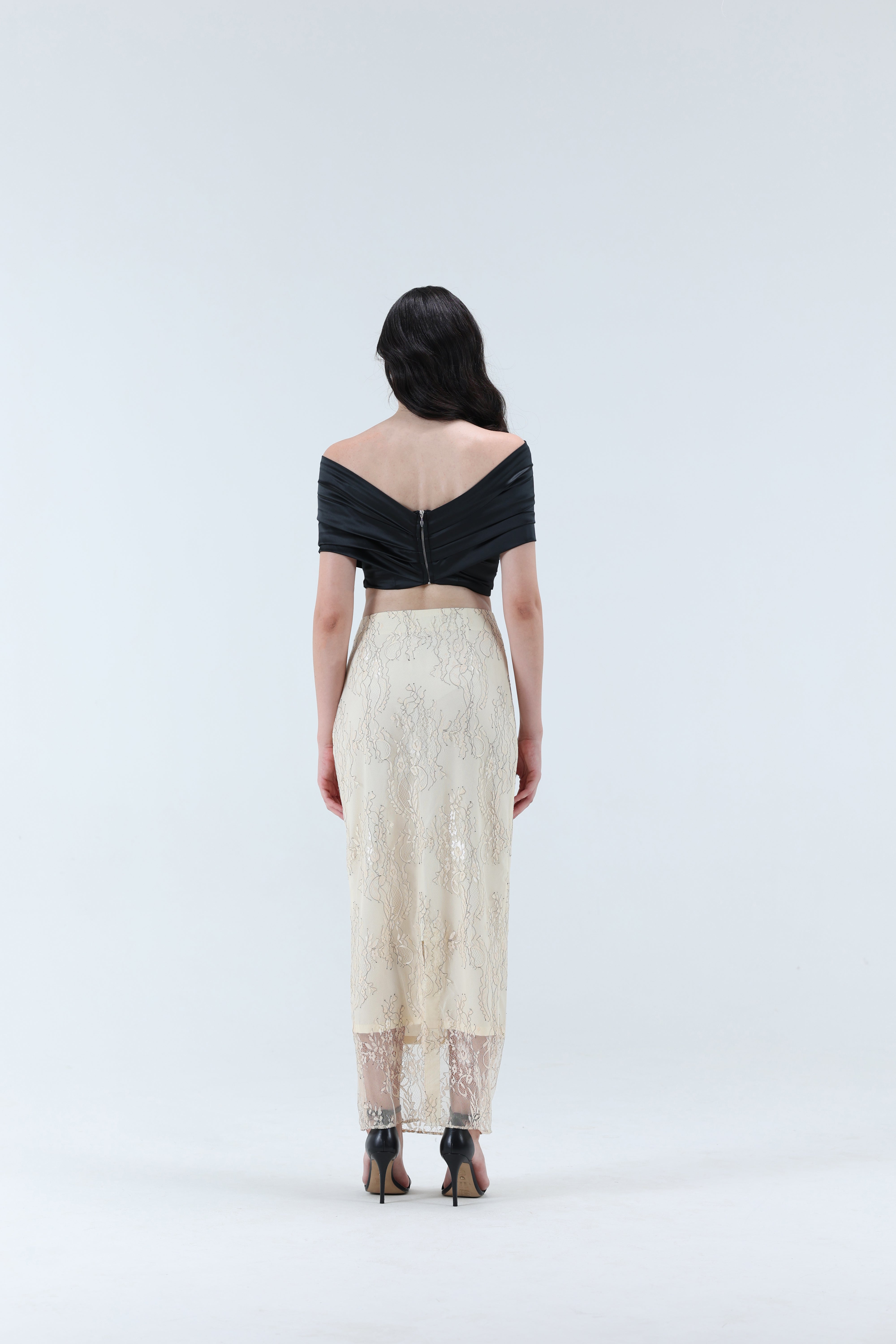 A timeless and sophisticated vintage-inspired lace skirt designed for elegance.