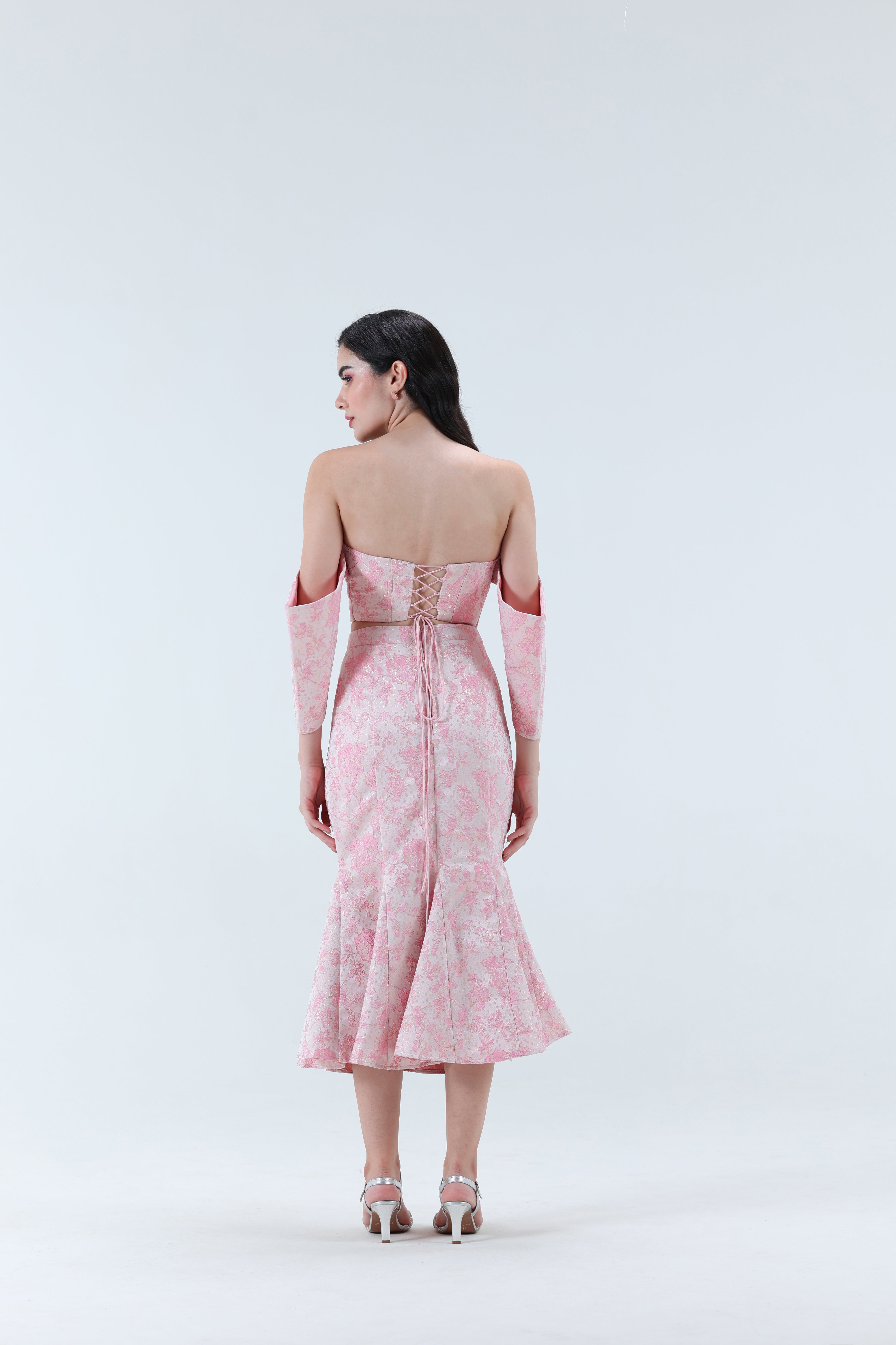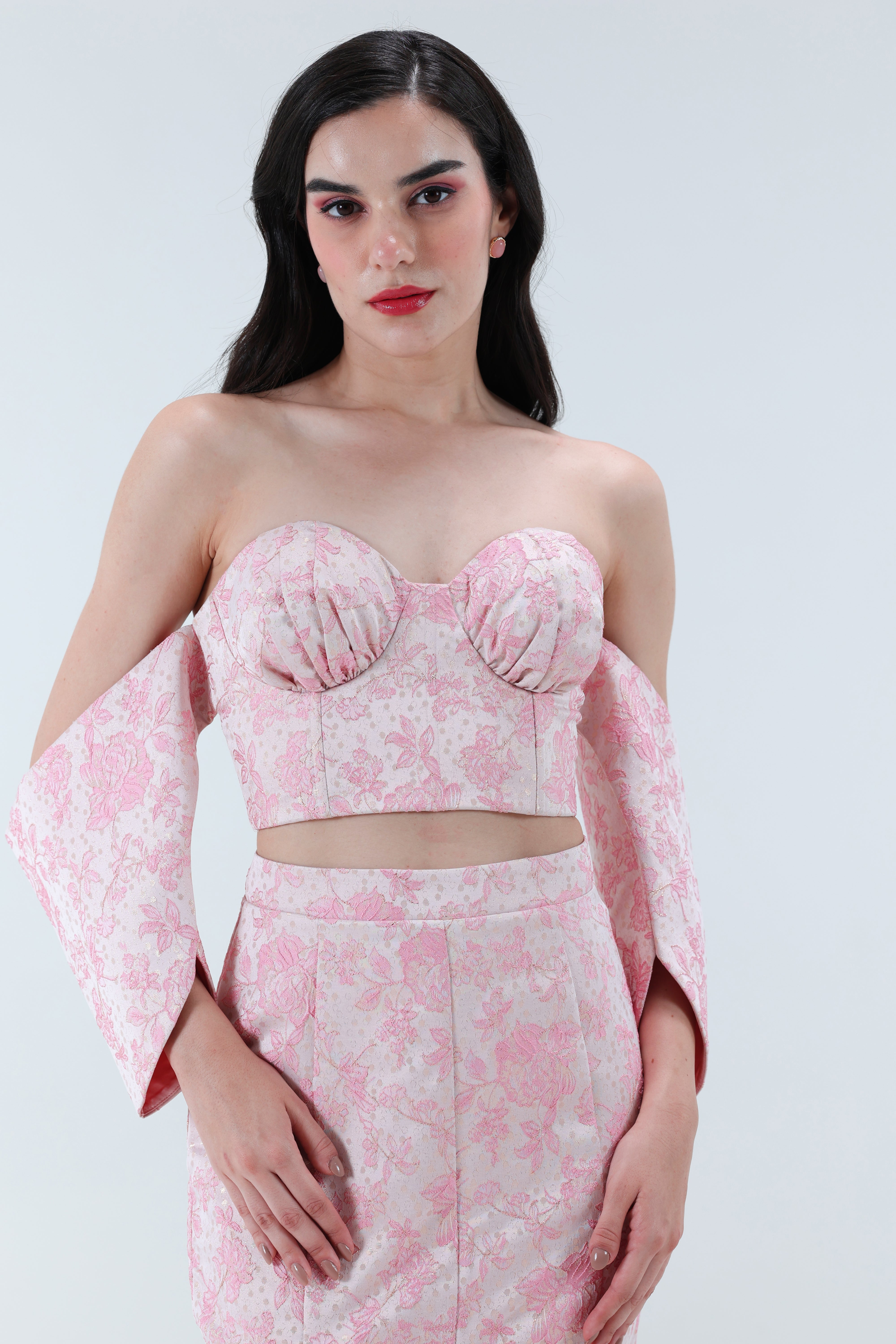 A high-fashion corset with a pleated bustier and crisscross back, perfect for an elegant yet bold look.
