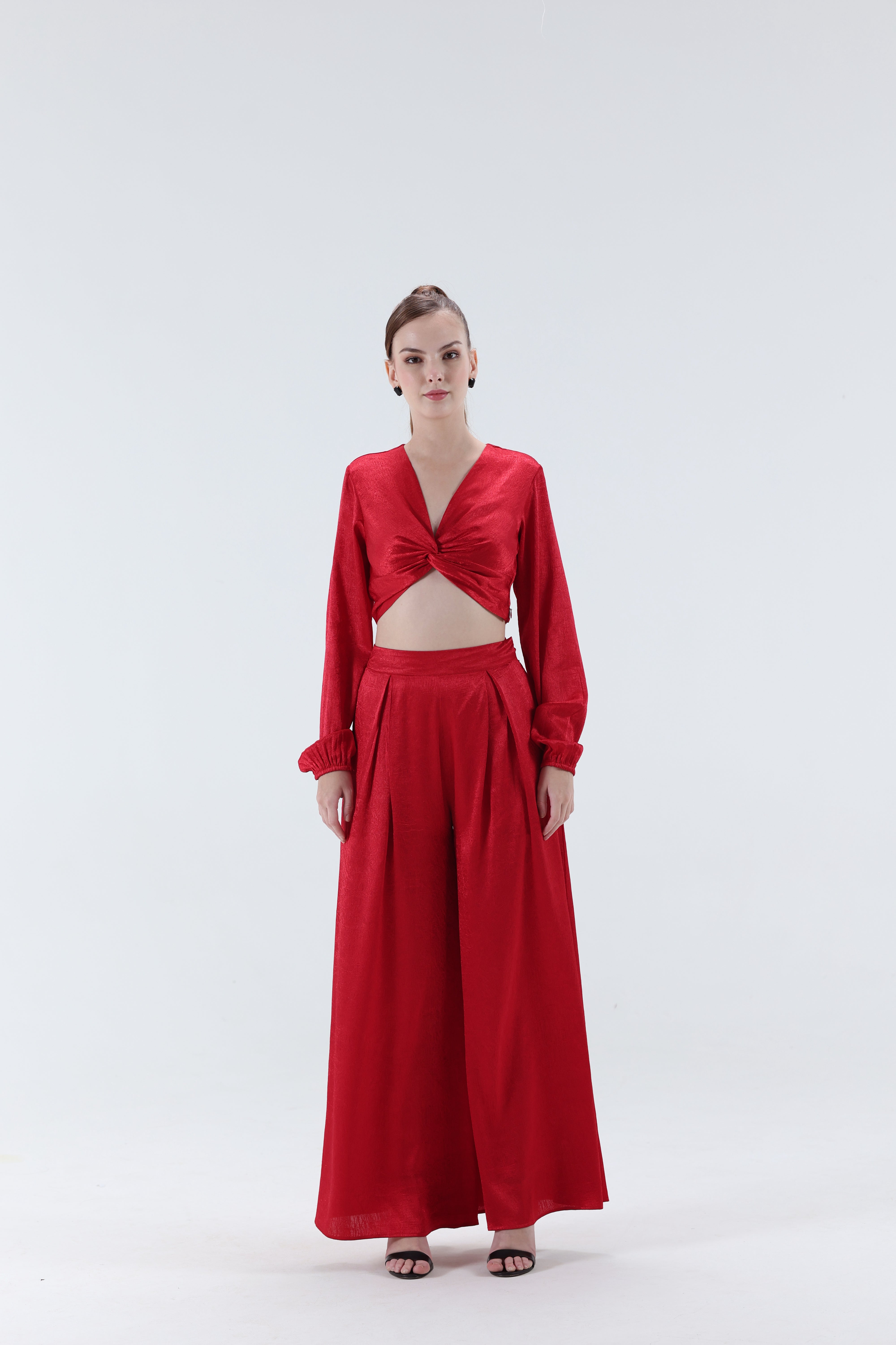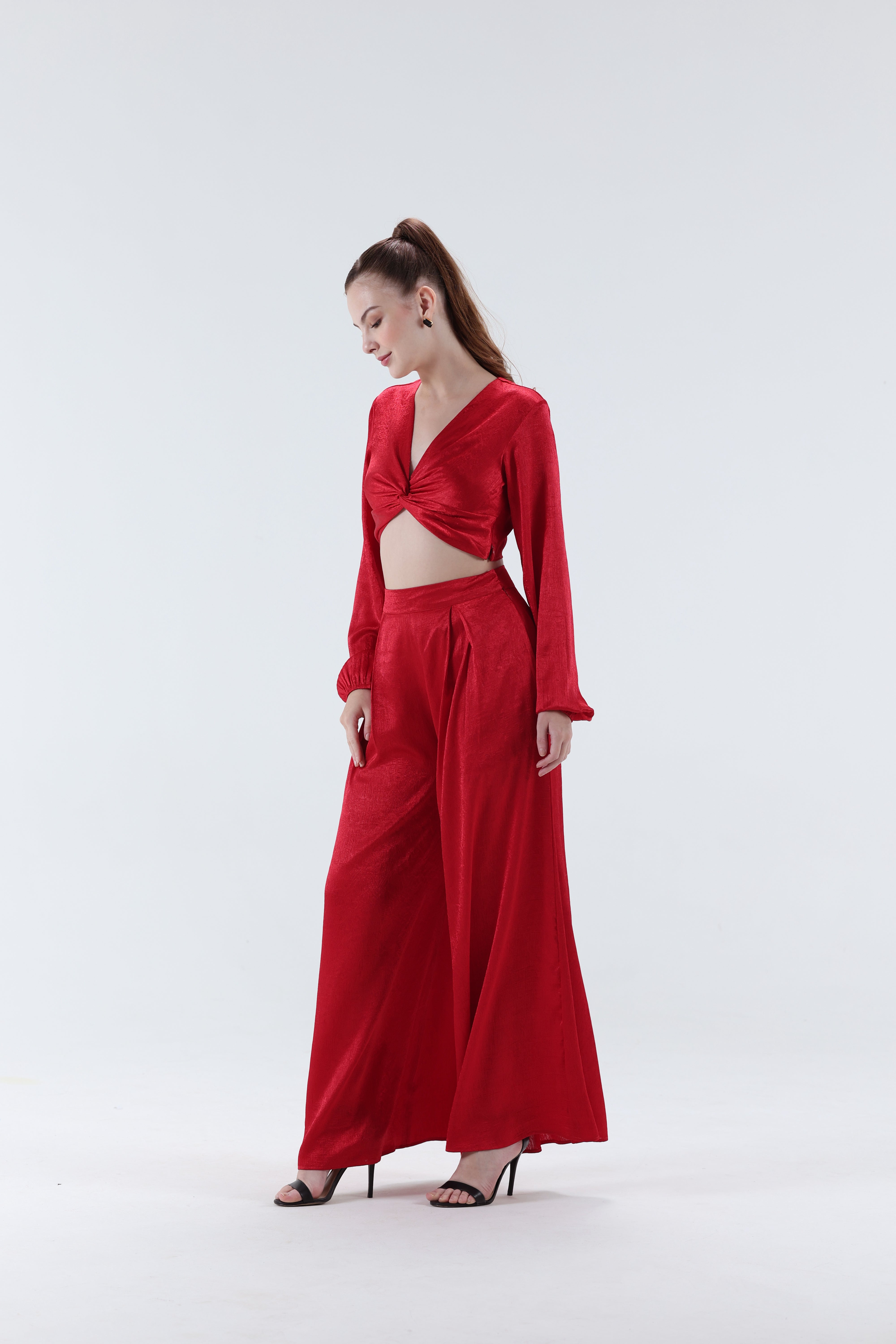 Step into a world where confidence meets couture. This red premium satin Palazzo co-ord set is a statement of modern glamour, effortless sophistication, tailored for the discerning woman with a taste for bold elegance.
